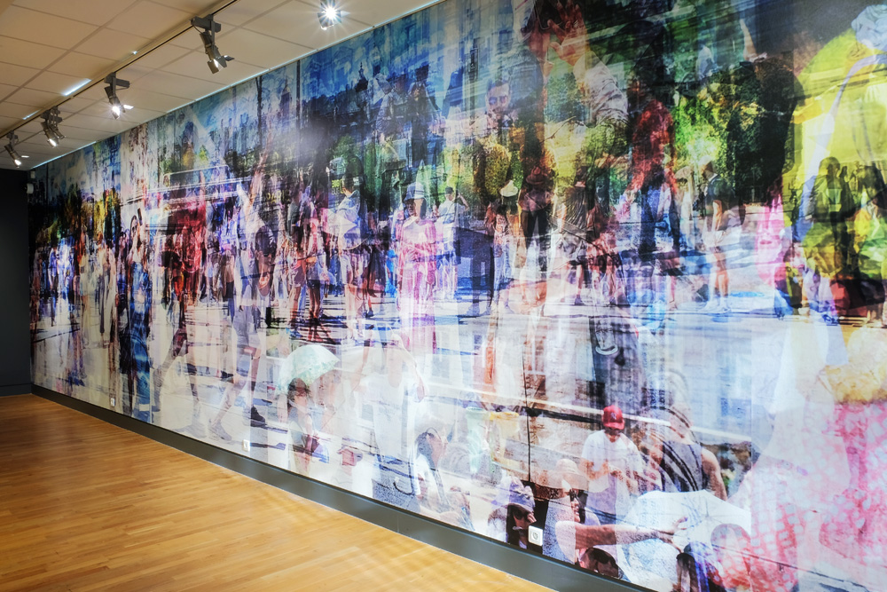 L’artiste a d’abord conçu ce collage pour offrir un contrechamp à sa série Paris Paris Paris, publiée dans un livre éponyme en 2024 : des visiteurs de passage face à des monuments qui restent figés. Pour cette exposition à Pont‑Aven, elle le déploie à une très grande échelle. Been There (2024) prend la forme d’une frise où certaines silhouettes s’affichent à l’échelle un, voire plus. L’oeuvre s’offre aussi comme un miroir de Photo Opportunities. La multitude explorant les mêmes lieux et générant une multitude d’images prend forme sous nos yeux. Reste à savoir où nous nous situons et si nous sommes prêts à faire un pas de côté...